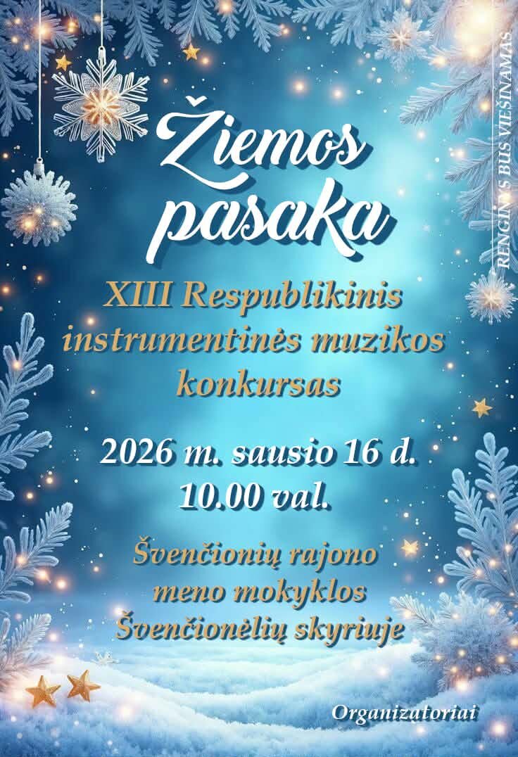 Skelbiame XIII Respublikinio instrumentinės muzikos konkurso ,,Žiemos pasaka" darbotvarkę, dalyvių repeticijų ir pasirodymo tvarkas.